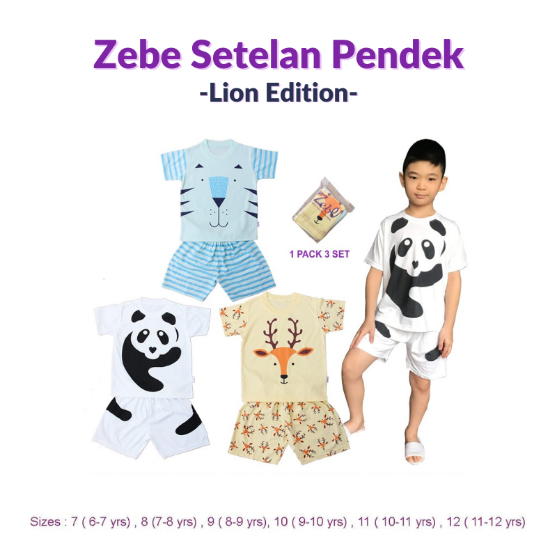 Zebe Setelan Pendek Tiger Lion Edition Isi 3stel Lazada Indonesia