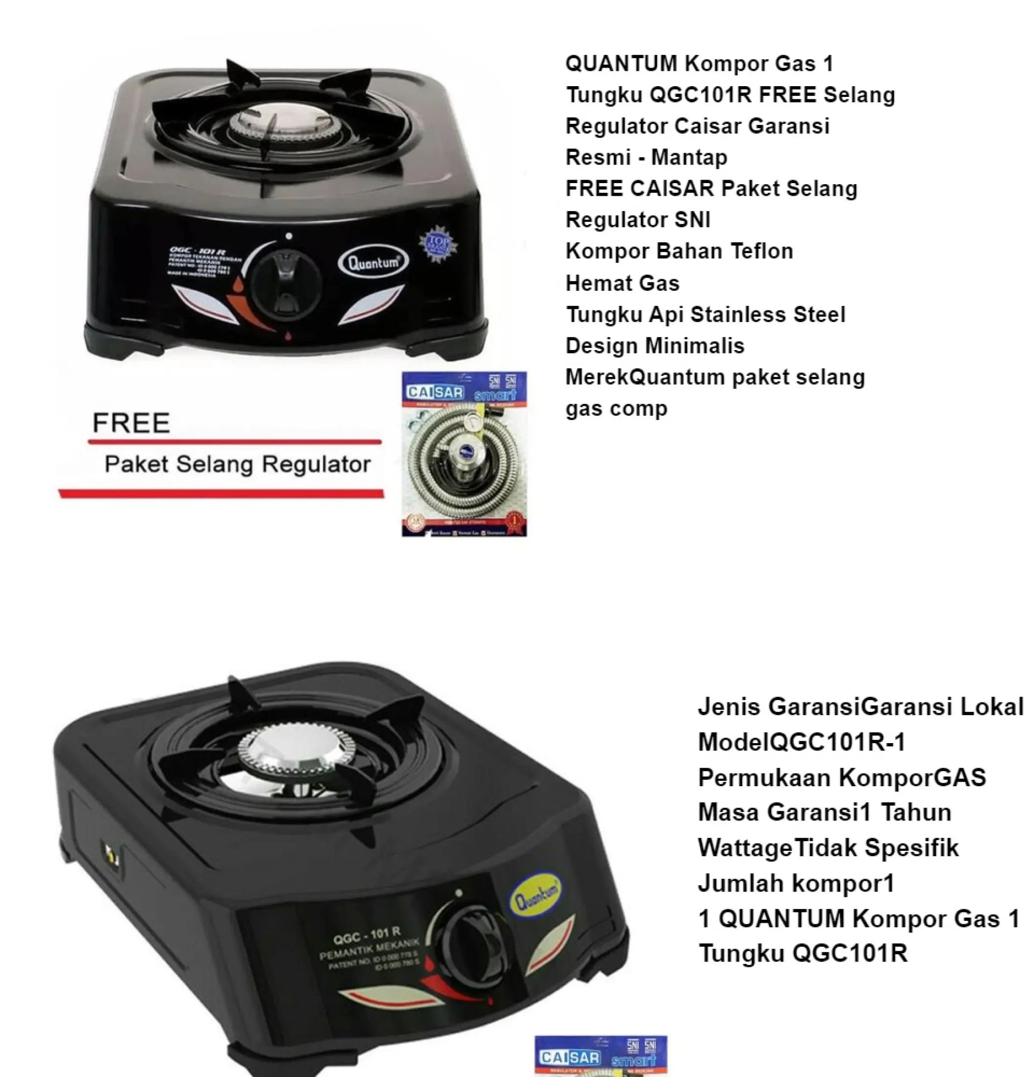 Quantum Kompor Gas 1 Tungku Qgc101r Free Selang Regulator Caisar Original Garansi Resmi Lazada Indonesia
