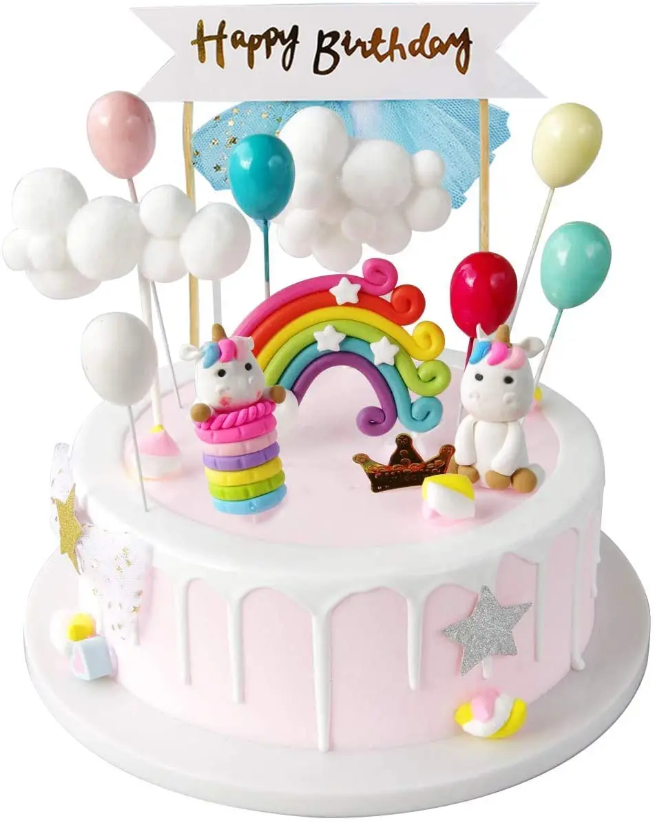 Birthday Cake Topper Anak Gadis Pesta Ulang Tahun Dekorasi Kue Awan Pelangi Perlengkapan Dekorasi Cake Warecart