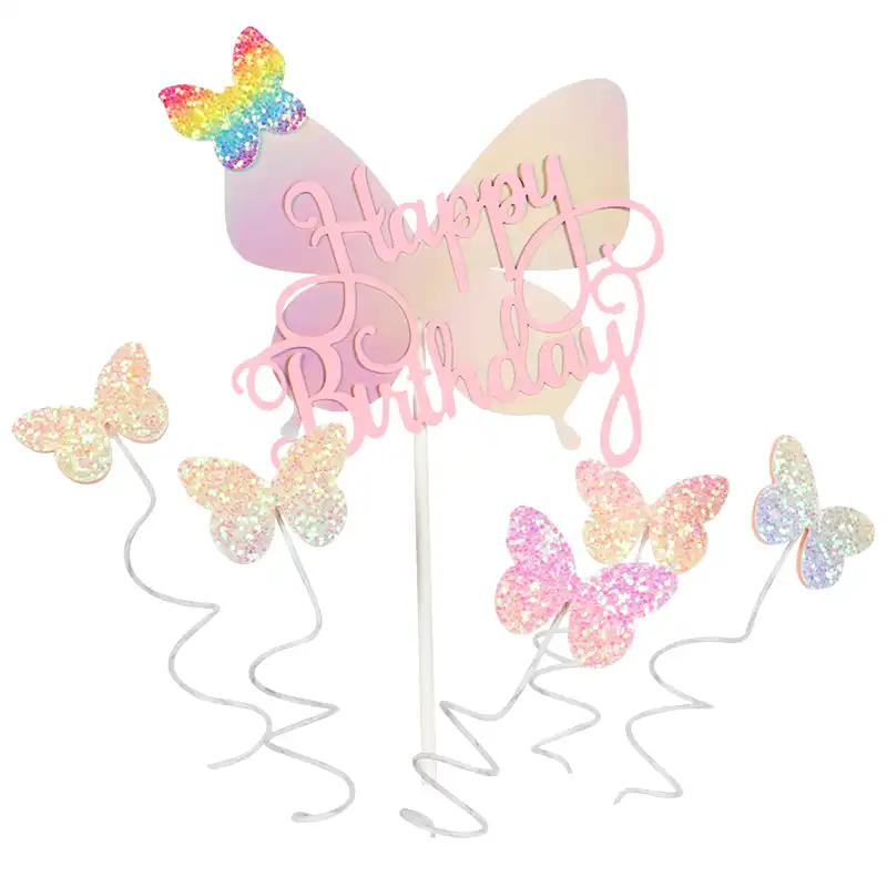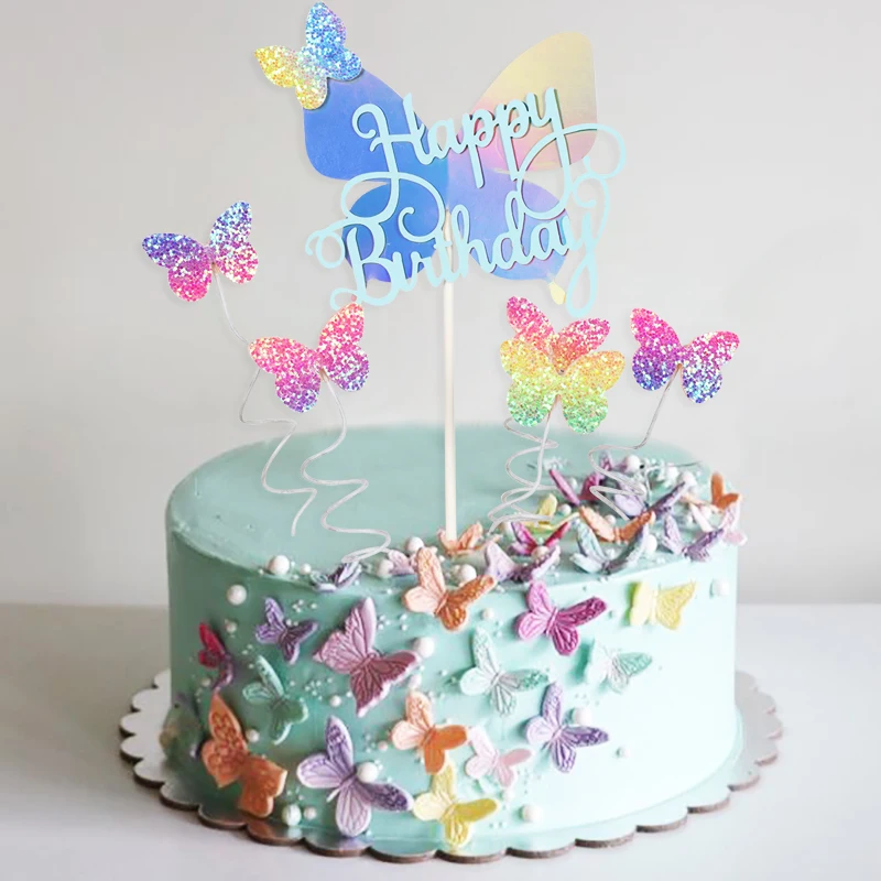 Selamat Ulang Tahun Butterfly Kue Topper Berkilauan Pelangi Butterfly Cupcake Hiasan Kue Makanan Penutup Dekorasi Baby Shower Perlengkapan Pesta Perlengkapan Dekorasi Cake Aliexpress