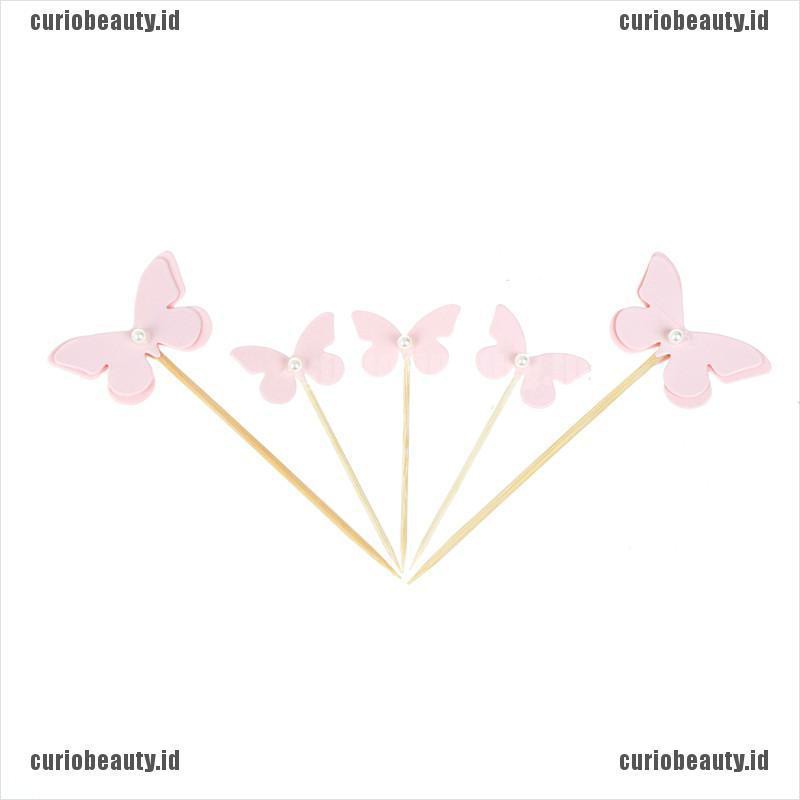 5pcs Topper Kue Cupcake Desain Kupu Kupu Pink Dengan Mutiara Untuk Dekorasi Pesta Ulang Tahun Shopee Indonesia