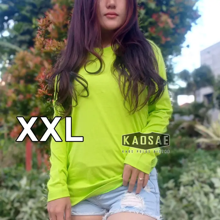 Kaos Polos Wanita Jumbo Lengan Panjang Xxl Cotton Combed 30s Distro Premium Murah Original Hijau Stabilo Lazada Indonesia