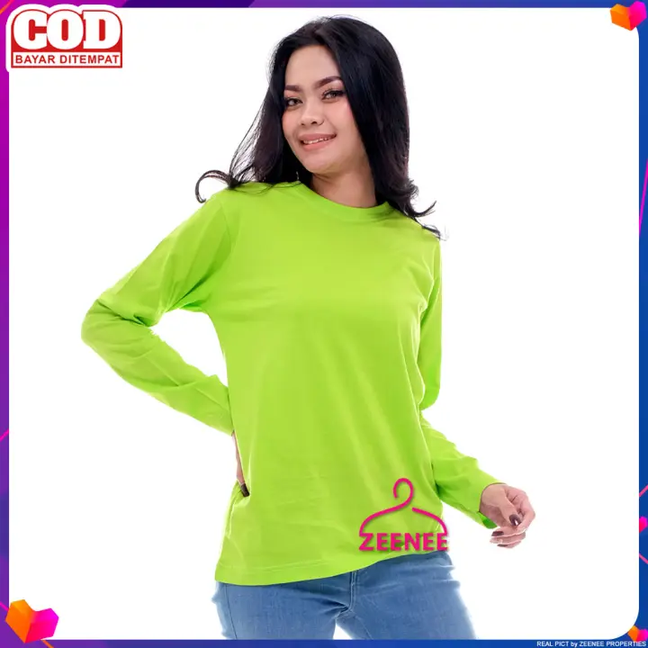 Zeenee Kaos Polos Wanita Lengan Panjang 30s Distro Adem Premium Original Hijau Stabilo Lazada Indonesia