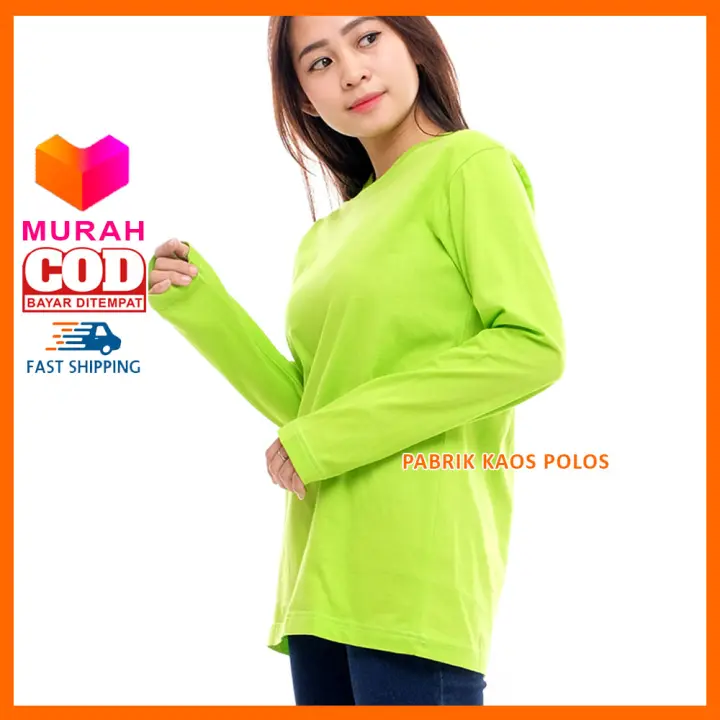 Kaos Polos Lengan Panjang Wanita Cotton Combed 30s Distro Murah Original Hijau Stabilo Lazada Indonesia