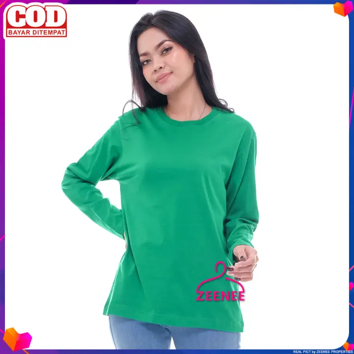 Zeenee Kaos Polos Wanita Lengan Panjang 30s Distro Adem Premium Original Hijau Fuji Lazada Indonesia