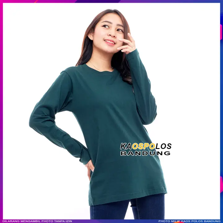 Kaos Polos Lengan Panjang Wanita Cotton Combed 30s Distro Murah Original Hijau Fuji Lazada Indonesia