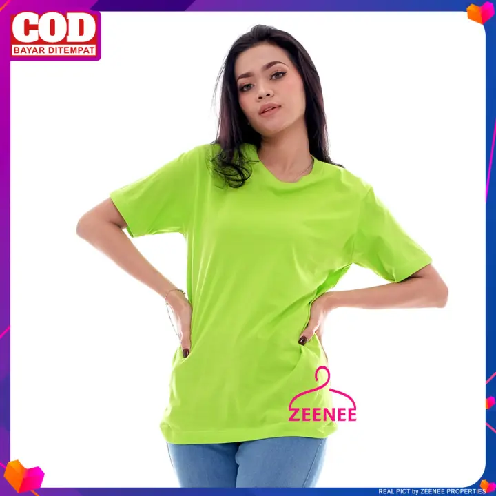 Zeenee Kaos Polos Wanita Lengan Pendek Bahan Katun 30s Distro Adem Premium Original Hijau Stabilo Lazada Indonesia