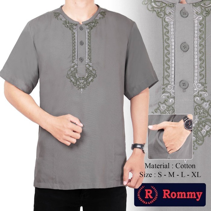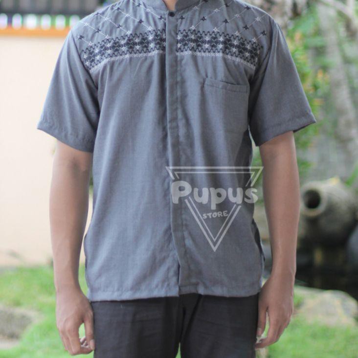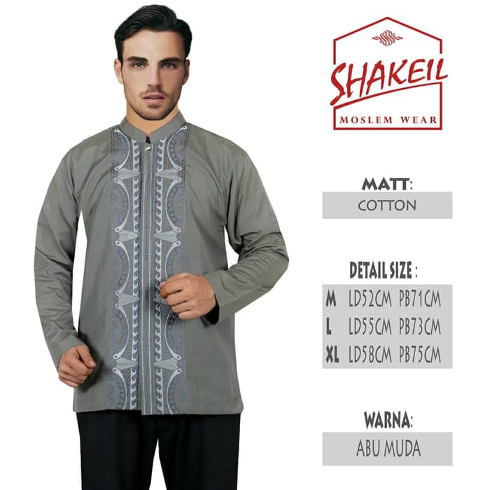 Jual Baju Koko Muslim Pria Shakeil Kombinasi Bordir Abu Abu M Berkualitas Di Lapak Zahra Bukalapak