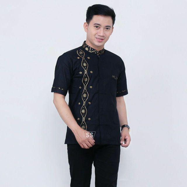 Jual Baju Koko Pria Lengan Pendek Bordir Rantai Kemeja Koko Batik Pria Hitam Kota Pekalongan Argoputro Store Tokopedia
