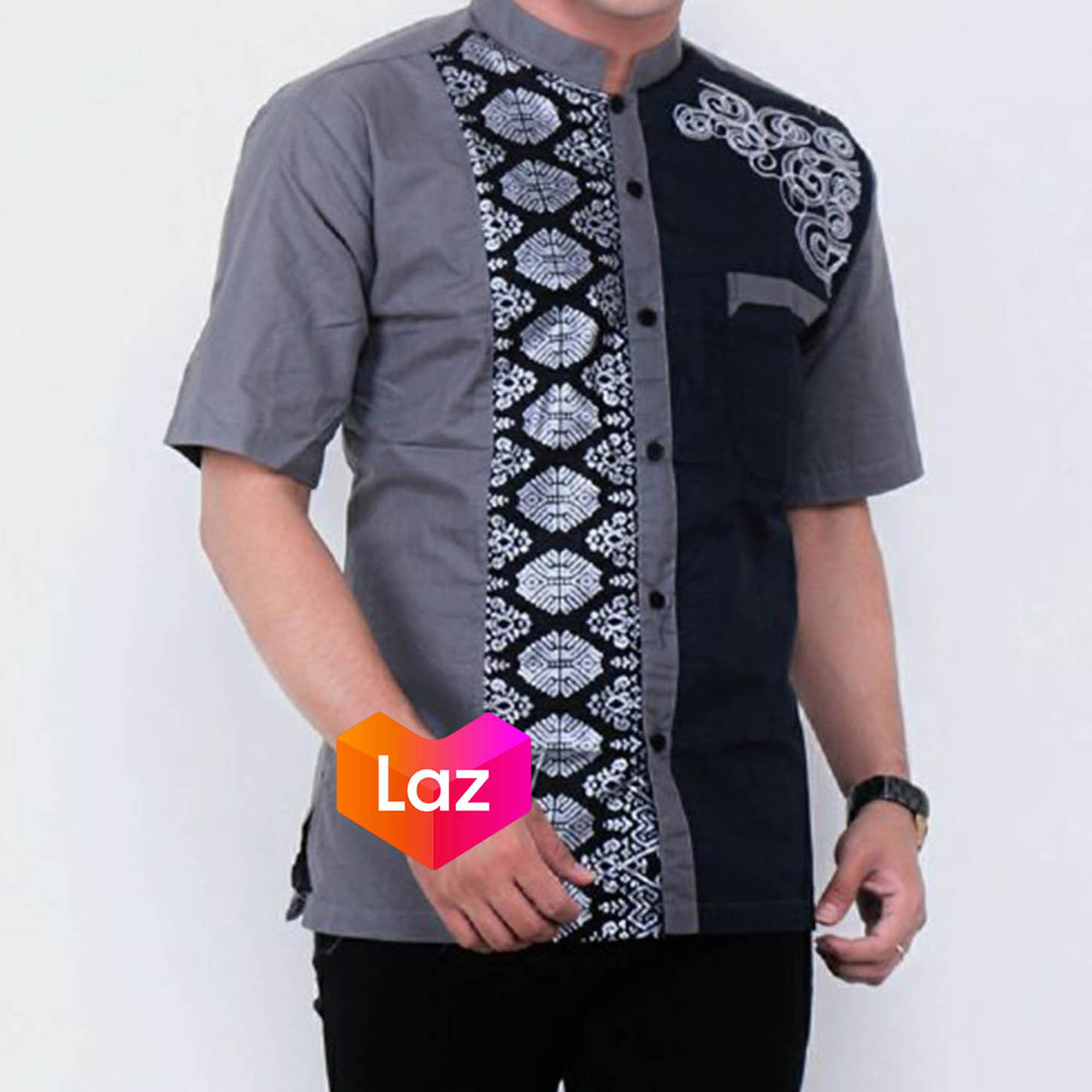 Kemeja Batik Koko Motif Ketupat Bordir Warna Abu Abu Lengan Pendek Lazada Indonesia