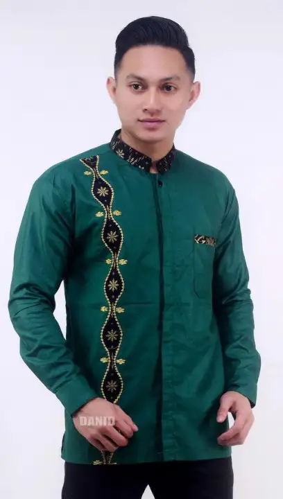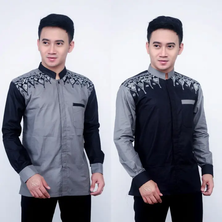 Baju Koko Muslim Pria Terbaru 2021 Baju Koko Pria Kemeja Koko Kombinasi Bordir Lengan Panjang Terbaru Kholifastore Lazada Indonesia