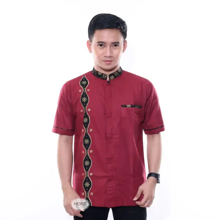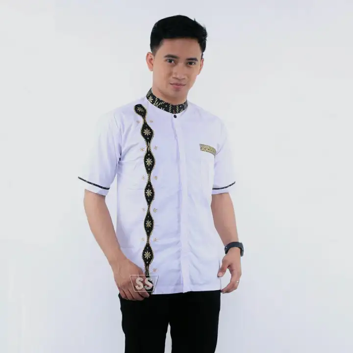 Baju Koko Muslim Terbaru 2021 Baju Koko Pria Baju Koko Lengan Pendek Koko Bordir Rantai Kombinasi Batik Termurah Alkhalis Lazada Indonesia