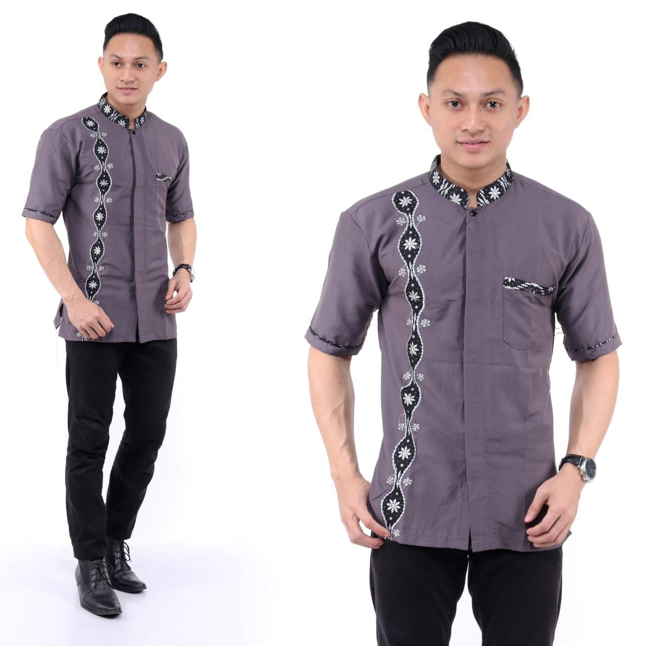 Jual Baju Koko Bordir Kombinasi Terbaru Kemeja Koko Original Batik Bordir Abu Abu L Kab Pekalongan Shohir Batik Tokopedia