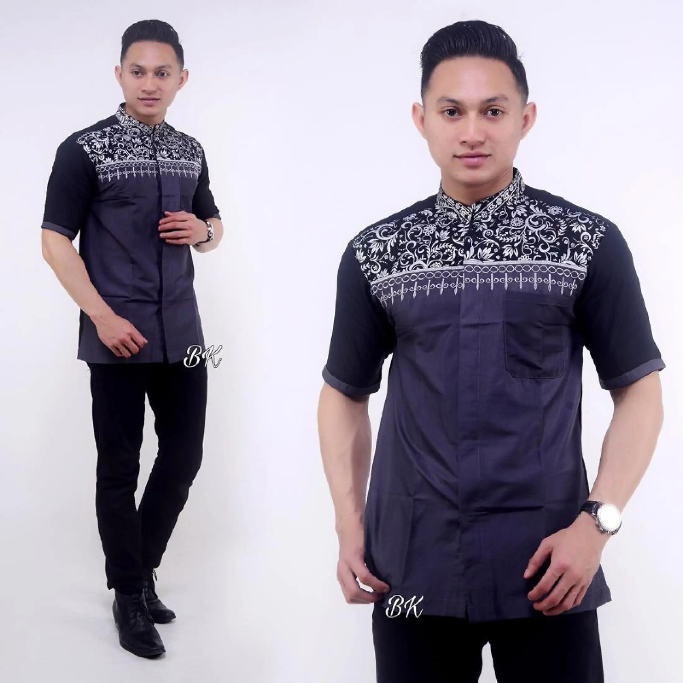 Jual Baju Koko Katun Bordir Halus Lengang Pendek Two Tone Hitam Cokelat Kota Pekalongan Alca Gallery Pekalongan Tokopedia