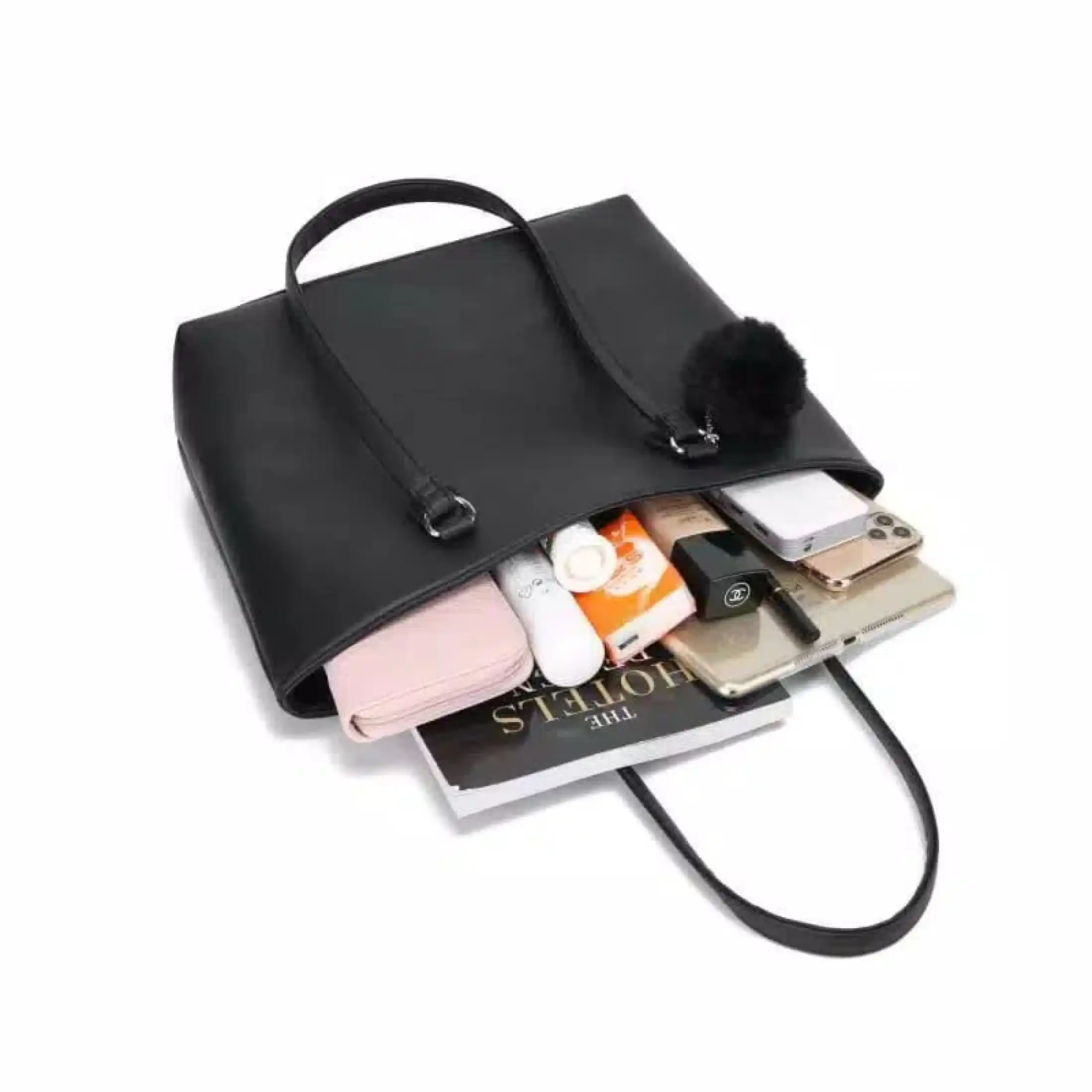 Tas Wanita Cewek Branded Import Hitam Simple Tote Bag Zara Basic Simple Fashion Free Pompom Lazada Indonesia