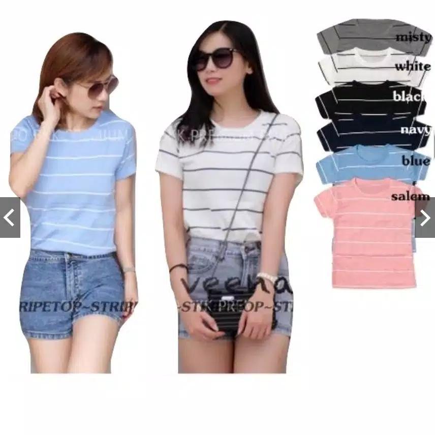 Thalia Fashion Zar Stripe Top Kaos Wanita Atasan Wanita Salur Lazada Indonesia