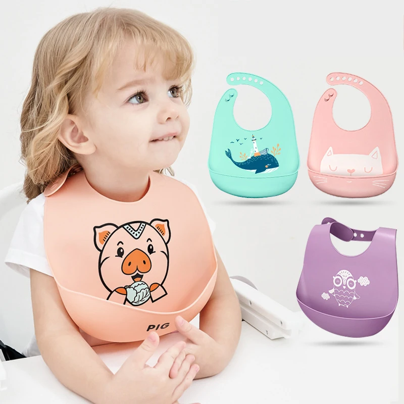 Bayi Bib Adjustable Gambar Hewan Tahan Air Air Liur Menetes Lap Lembut Dimakan Silikon Ssaliva Handuk Dropshipping Aliexpress